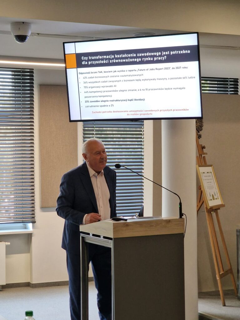 W dniu 29 sierpnia br w Powiatowym Centrum Konferencyjnym w Wodzisławiu Śląskim odbyła się konferencja dotycząca kształcenia zawodowego pn.” Edukacja-biznes- samorząd. Razem dla lepszego jutra”. W roli prelegenta wystąpił prof. Jan Klimek Prezes Związek Rzemiosła Polskiego, który prezentował referat nt.” Transformacji kształcenia zawodowego dla przyszłości zrównoważonego rynku pracy”.
